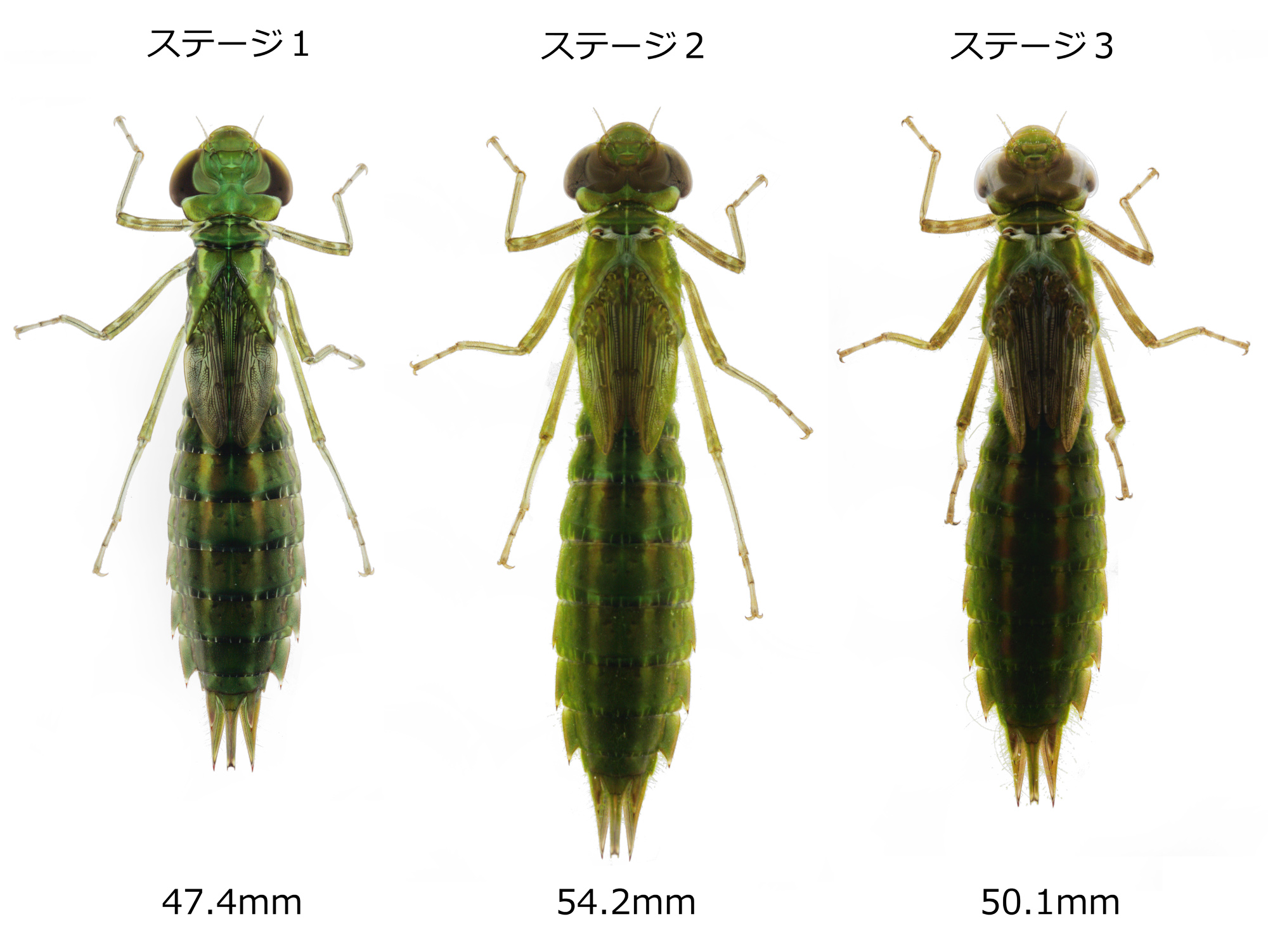 • 必ずしも、最後まで直線的に伸びるのではなく、下のオオギンヤンマのようにステージ2で体長が最大になる場合もある。